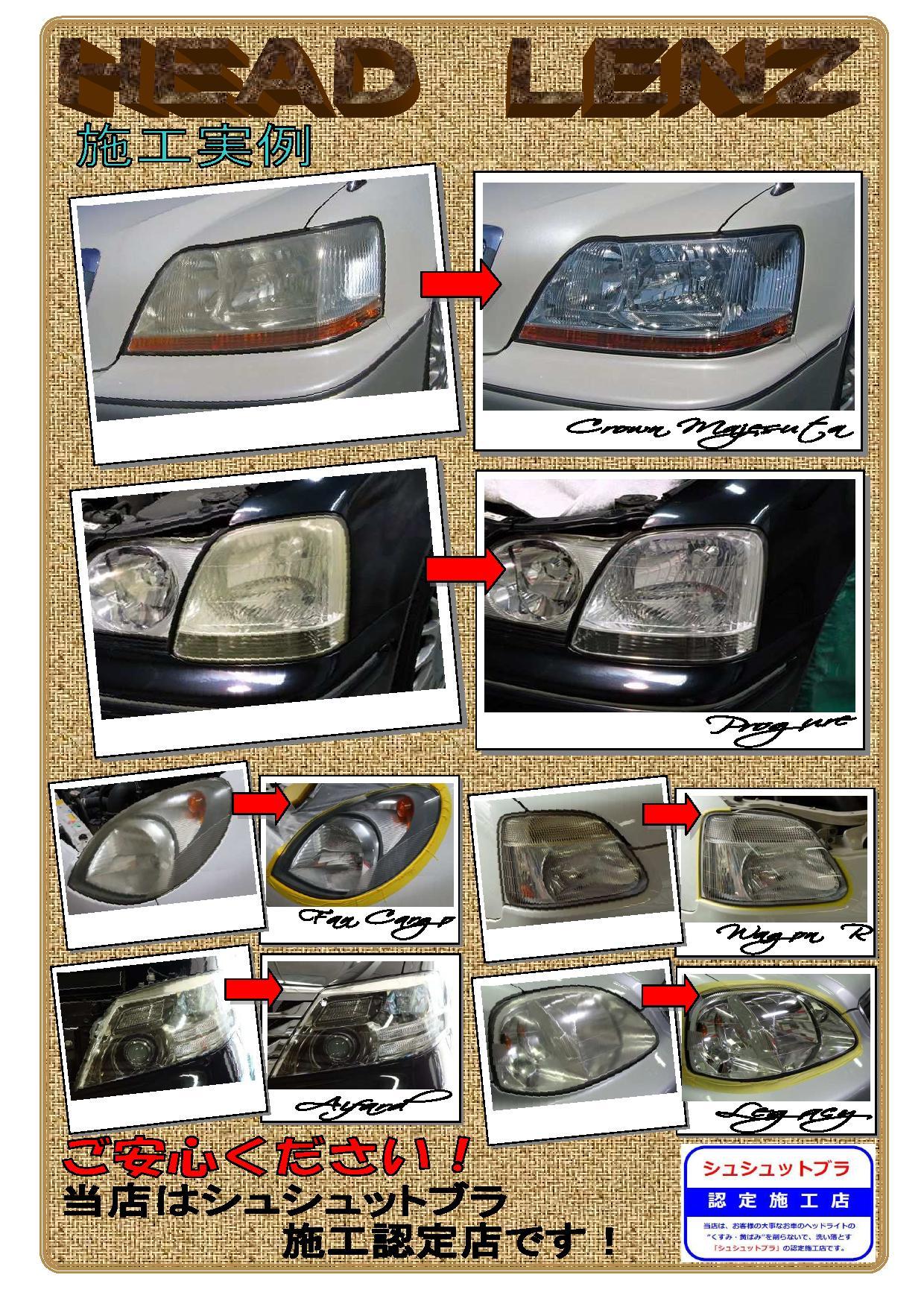 ヘッドライトの黄ばみやくすみを、当店のプロスタッフが、特殊施工システムで“くすみ・黄ばみ”を削らないで、新車の輝きに復活施工致します。